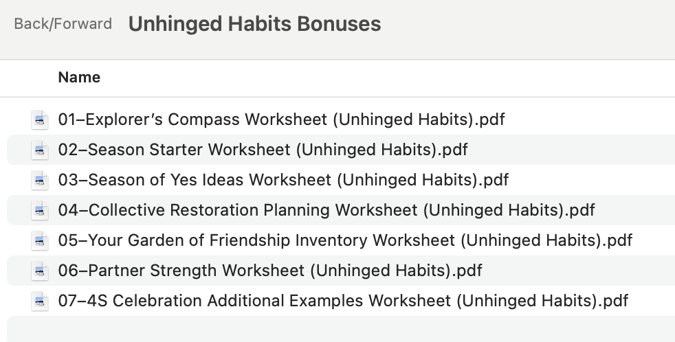 I just linked up all seven bonus downloads for Unhinged Habits.