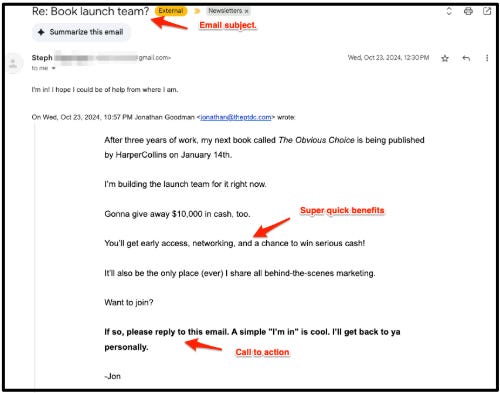 Instead of hoping enough of the right type of people buy a copy, I’m going to find them and gift them. Before you get 10,000 readers, focus on getting 10.