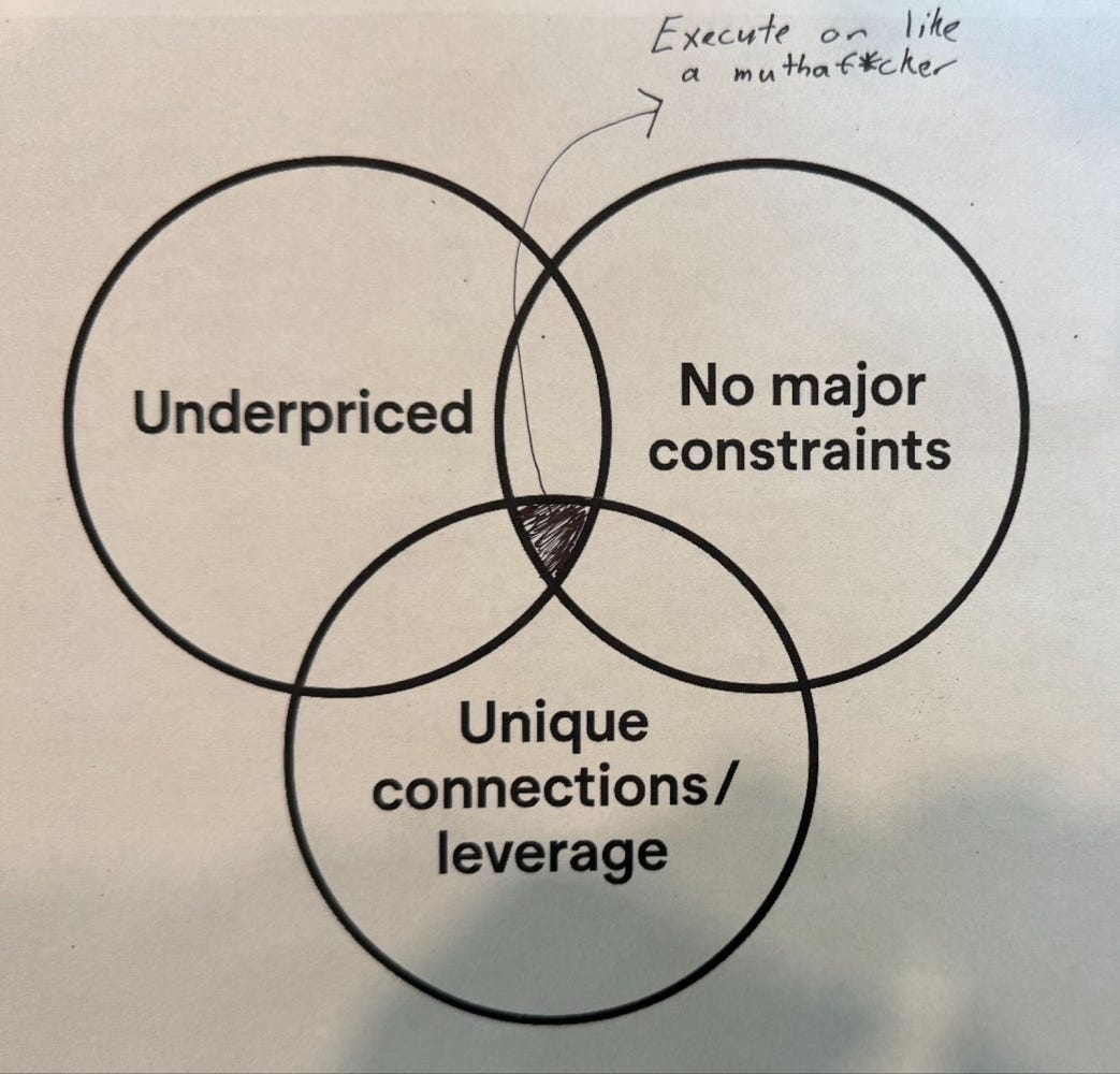 I'm a father to three young kids, own two businesses, and need to work out. With limited time, I can only pursue underpriced opportunities where I have a competitive edge.